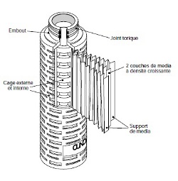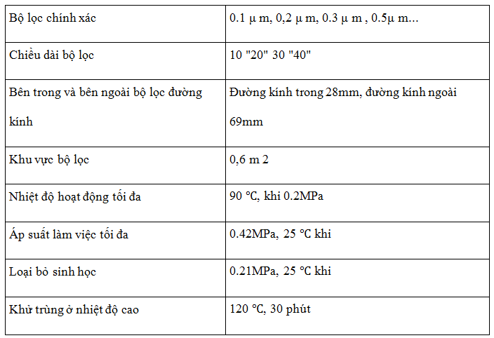 Lõi lọc được làm hoàn toàn bằng polypropylene, bao gồm cả chất kiệu màng lọc, ống trung tâm và các bộ phận hỗ trợ.